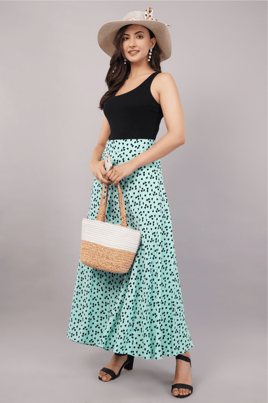 Green Heart Maxi-Length Wrap Skirt in Premium Rayon