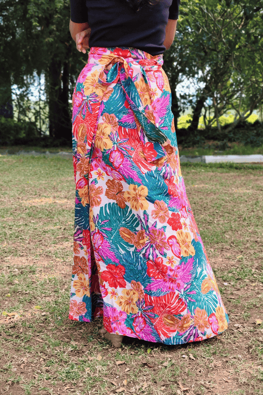 Tropical Maxi-Length Wrap Skirt in Premium Rayon