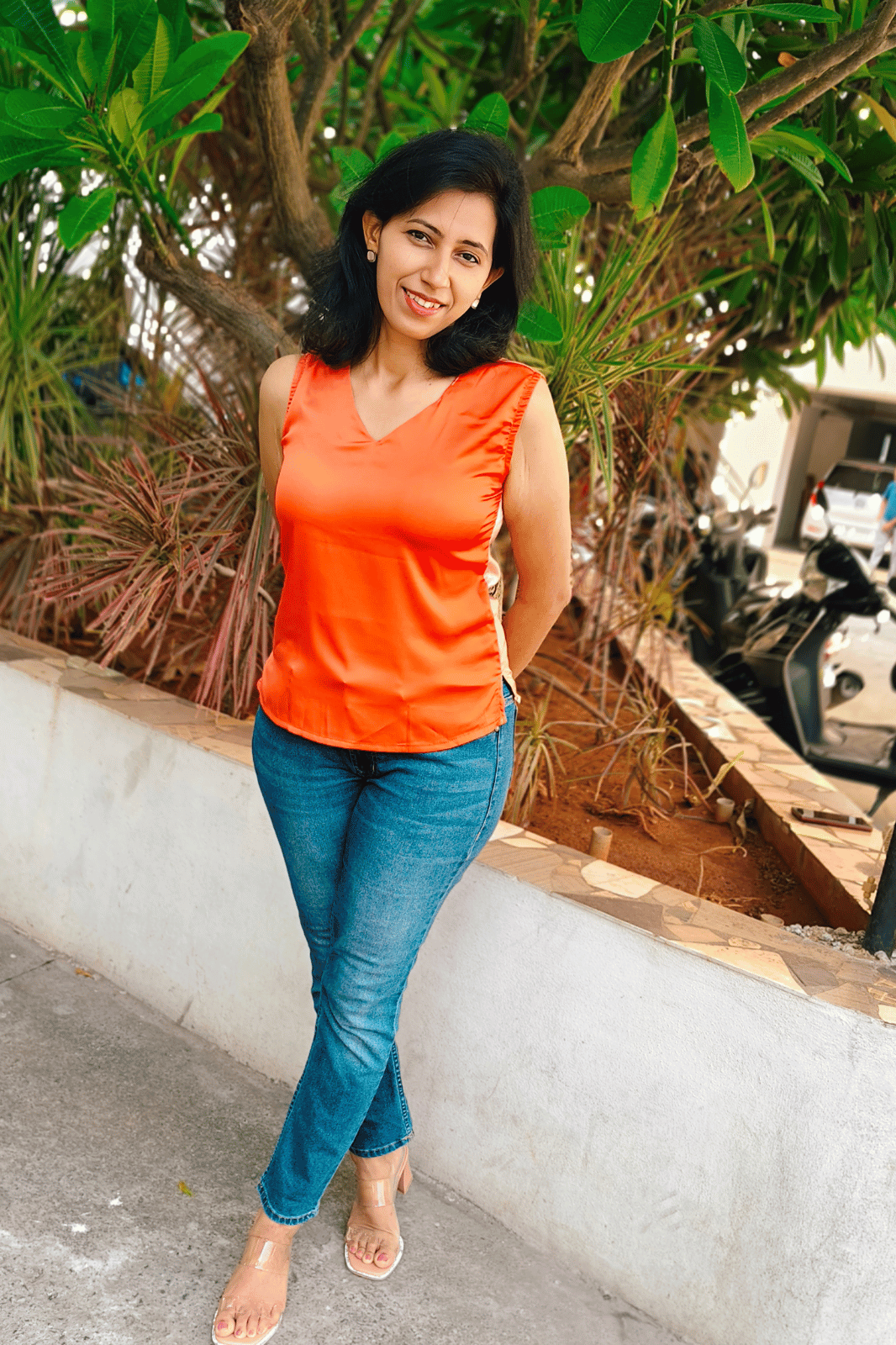 Elevate your wardrobe with this Orange ombre print V-neck sleeveless top, crafted from luxurious Japan satin for a smooth, glossy finish. The gradient ombre effect creates a sophisticated and eye-catching look, while the flattering V-neckline enhances the natural silhouette. Designed for effortless elegance, this versatile piece is perfect for both day and evening wear. Whether styled for a classic chic or a romantic soft look, this lightweight and breathable top ensures comfort and sophistication.